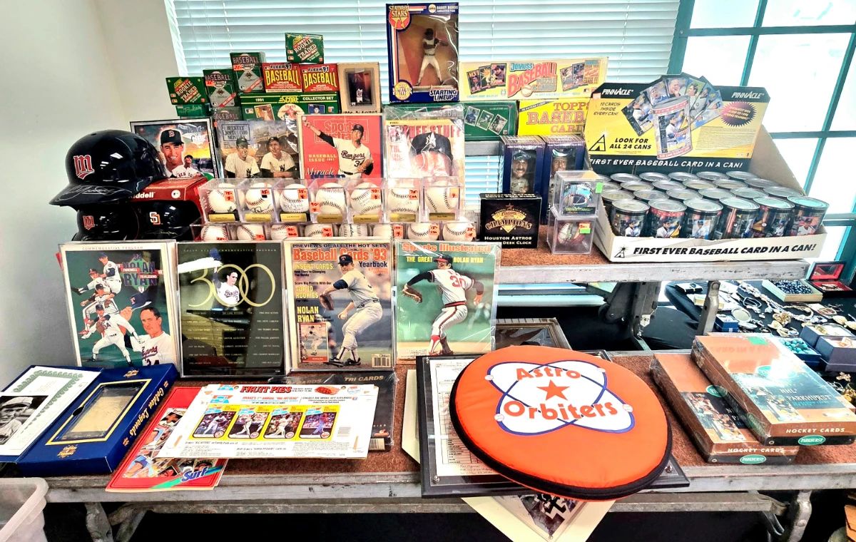 This is the BIG ONE! Baseball, football, basketball & hockey. Cards from the 50's- Current. Tons of HOF'ers There are complete sets, tons of Houston Astro items,framed pieces and many singles. Check out the Pokemon Collection, great selection and deals. There are thousands of comics, we can sell many in quantity. There are thousands of pieces of silver jewelry, some gold pieces and a massive selection of custume jewelry, both old & new. ARTWORK- There are originals, signed & numbered prints and much more. We have antiques, sewing machines, goid stuff all over. We have saveral Antique Firearms for sale....