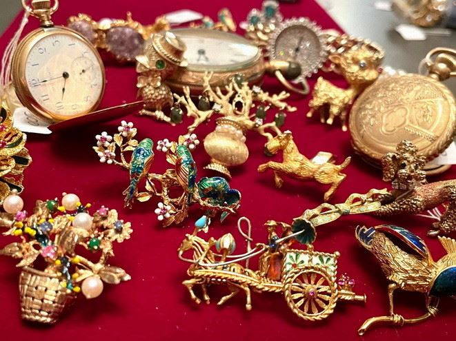 A spectacular sale that is made for the holiday season – full of fine jewelry made from diamonds and semi-precious stones, 14k and 18K, watches, designer handbags, Meissen candlesticks, quality furniture – all of that and more. Please Note ... because of the value of sale items, on-site security will be present now through the start of the sale (meaning they’ll be on-site through the night). Shoppers will be delighted over the many choices starting with ... Rare Collection of 14k and 18k Vintage Brooches, Watches, Cufflinks, Diamonds and Colored Gemstones, Huge Assortment of Gold and Silver Gemstone, 14k Gold...