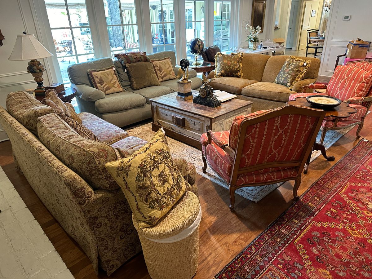Couple is downsizing. Lots of furniture, sofas m, tables, kitchen items, fabrics, bedding, decor accents, art, dining tables, dining hutch, outdoor furniture, accent tables, desks, leather chairs and much more! Well-kept home conveniently off Hillcrest with lots of nice items!