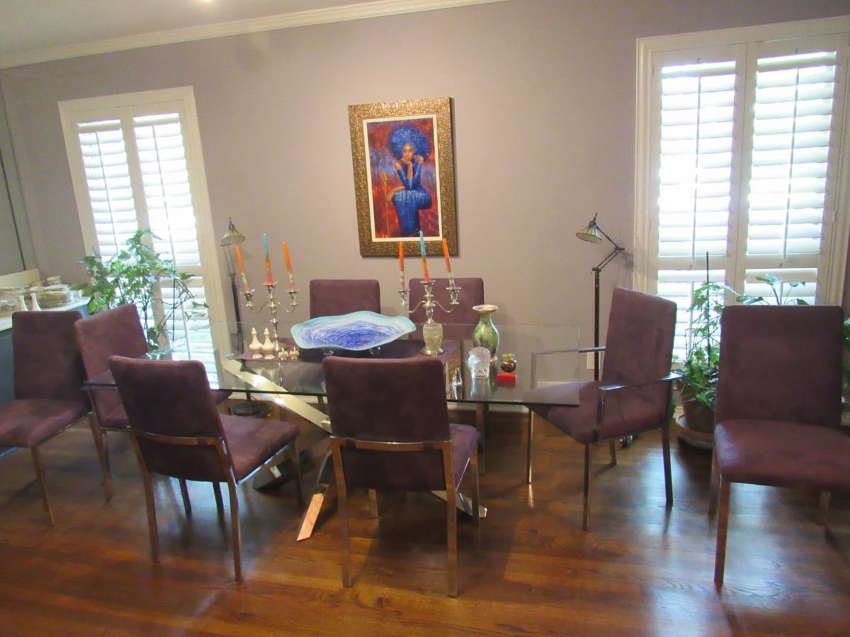 ESTATE MOVING SALE~NORTHAVEN RD ~2 DAY SALE~ Friday, August 15 & Saturday, August 16 OPEN 9:30 am~4:30 pm CLOSE This is a Very Nice Clean Estate Sale ***Cool Chrome & Glass Dining Table with 8 Matching Chrome & Purple Suede Chairs*** Like New LG Stainless Fridge Fridgidaire Full Size Commercial Fridge w/Glass Door Like New Samsung Washer & Dryer *Full Size Game Table* Octane Fitness Equipment Nice Rug~Pictures~Artwork Murano Venetian Glass Lladro~Art Glass Dolls Set of Lennox China Mid Century Dresser~Misc Lamps Electronics~Bose Speakers~DVDs~LPs Nice Curio Cabinet~Steamer~Safe Nice Collectable Tiffany Style Lamps Kitchen is Full~Fiesta Ware Full Set of White...