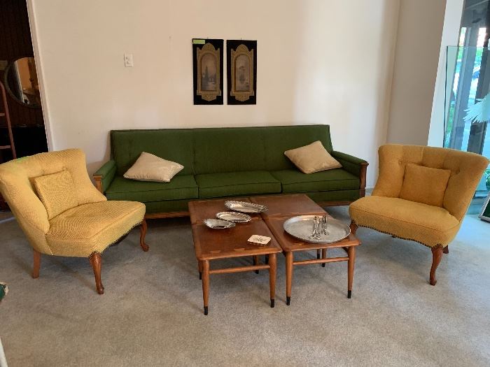 Mid century modern furniture - Couch, tables, cabinets, chairs, & art.