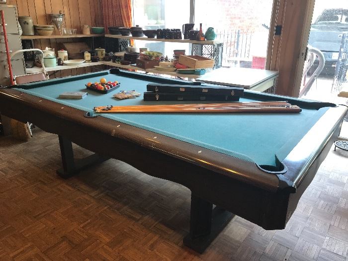 Fisher pool table,tools,pink depression glass, fiesta, sets of dishes,mar-crest stoneware, books, lots of kitchen and household items,several China cabinets,bedroom furniture, several tables and chairs, living room furniture, mid-century furniture, office items,records,lots of vhs and dvds ,and much more !