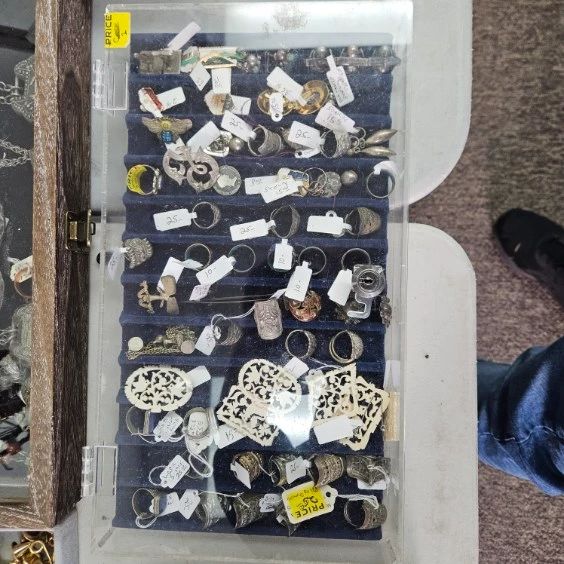 This sale is from a store that closed in the mid 1990s on the strand in Galveston . We have Antiques from China the Quing Dynasty. We have silver jewelry, hats adornments, bracelets, beads, brooches, charms and pendants, rings, coral, bone and ivory, tortishell, hair combs and hair pieces, Vintage antique silk embroidered textiles from India,forbidden embroidery from china in wallets, pouches, purses etc. Batik fabric, fabric with silk floss work, antique rug collection, antique blue willow from Japan, vintage toys, ornaments, home decor, ephemra, records, piano rolls, furniture, and more! Great gift ideals for the holidays coming up!