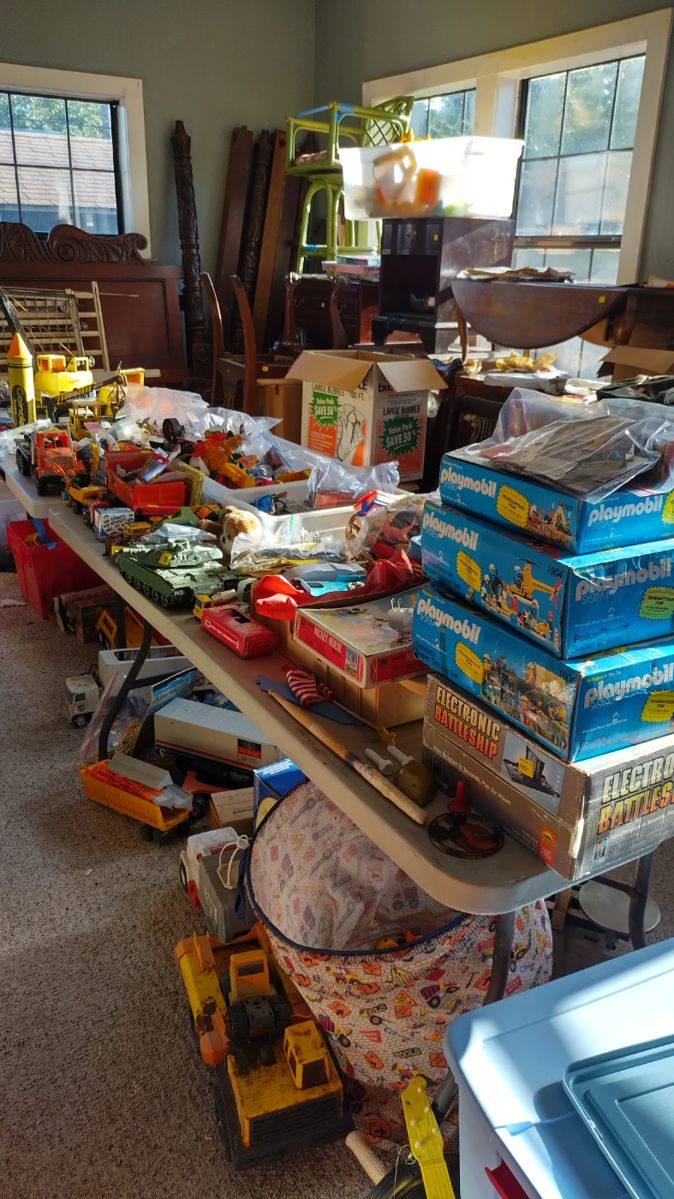 This is the 2nd run of this house. We are opening up at 50% Off and do have a few new items in it. Contents includes toys,tonkas, hot wheels,matchbox and more, trains, dolls, Christmas, Hollowen, books, glassware, kitchen, furniture, island cart, clothes,throw pillows and linens, old sewing machine,art and home decor, we will have to limit access first thing in the morning if there is to many to let in.