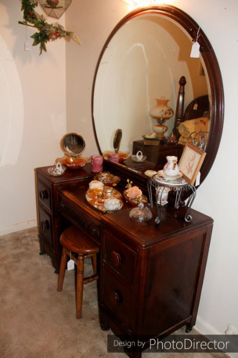Whether you were hoping to find scrumptious antiques or just wanted to catch a glimpse of an elusive Olsen twin, you’re in the right place! Okay, no, we don’t have the Olsen Twins. We do, however, have an abundance of vintage and antique items available at this sale. To highlight a few, we have an assortment of vintage kitchenware including Pyrex, Tupperware and Corningware, milk glass, a unique antique engraving kit and a large Craftsman tool chest FULL of quality Craftsman tools. And perhaps some of the most interesting pieces at this sale are those featured in the gorgeous dark...