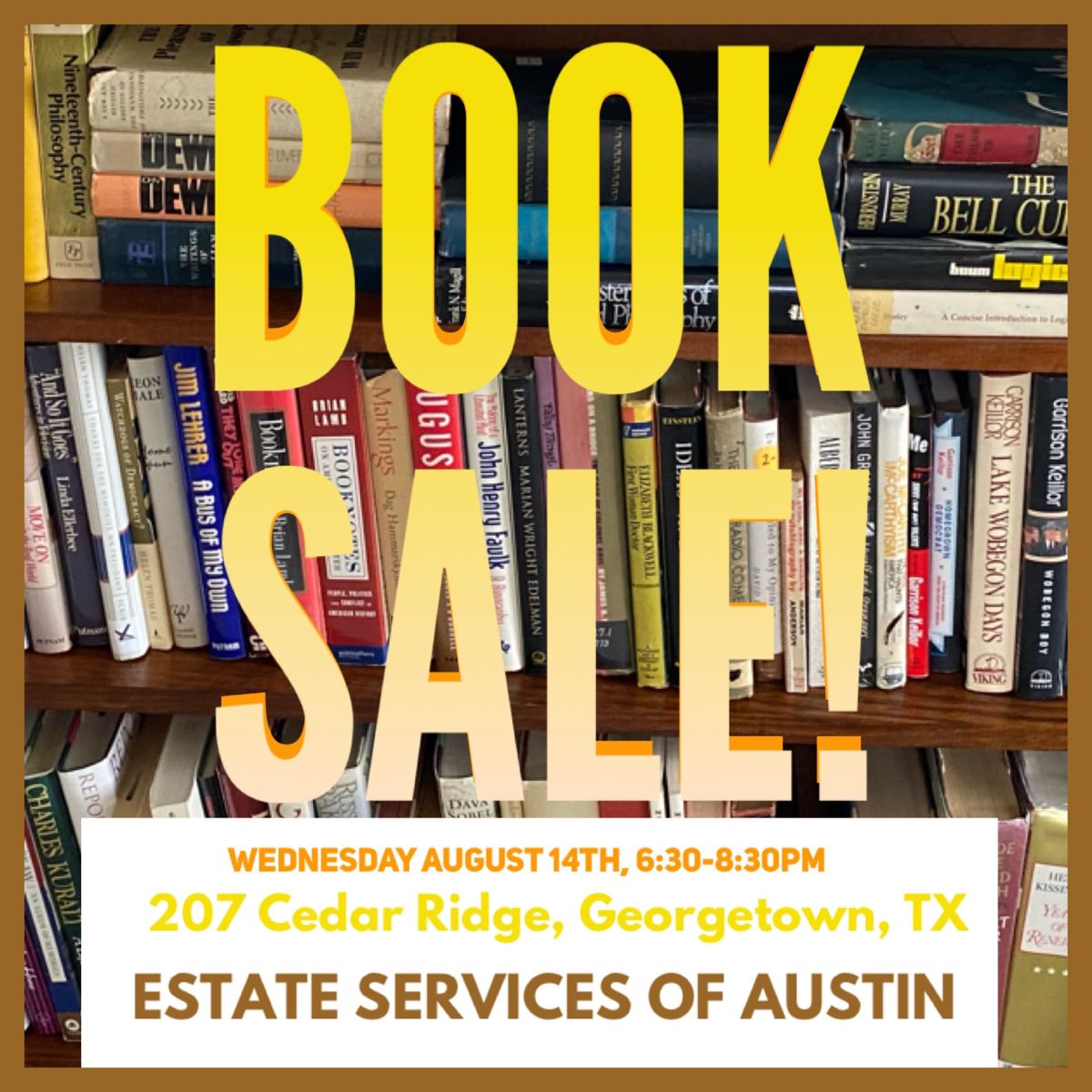 This is an exquisite book sale! Come find the rare ones, the out of print ones, the one you’ve wanted but can never find, the collectible ones, and all the other books you could hope to run across. Come see the wonder! Come check it out! It’s books, books, and more books! It’s a Book Sale! Find lots of first editions and signed books. There’s books covering a wide timeline and variety of topics. You’ve gotta come check it out! 207 Cedar Ridge, Georgetown, Texas ! Wednesday, August 14th. 6:30 to 8:30 PM