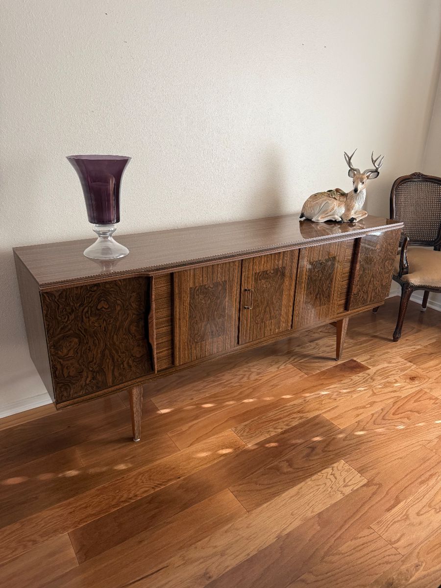 Step into a beautifully curated home featuring standout mid-century modern (MCM) pieces and a wide mix of quality vintage and household essentials. Featured MCM Finds Rare, mint 1960s Danish rosewood sideboard with built-in bar, Matching Danish dining set with four chairs, Additional MCM and vintage furniture, Beautiful original art, Traditional dining set with hutch, Fine china, glassware, trinkets & figurines, Clocks, watches and jewelry, Pyrex & Corning Ware, Kitchenware, home décor, and electronics, Women’s clothing and accessories, Washer & dryer, Patio furniture and décor, Sewing machines & notions, Tools and garage items, So much more in every room—perfect for collectors,...