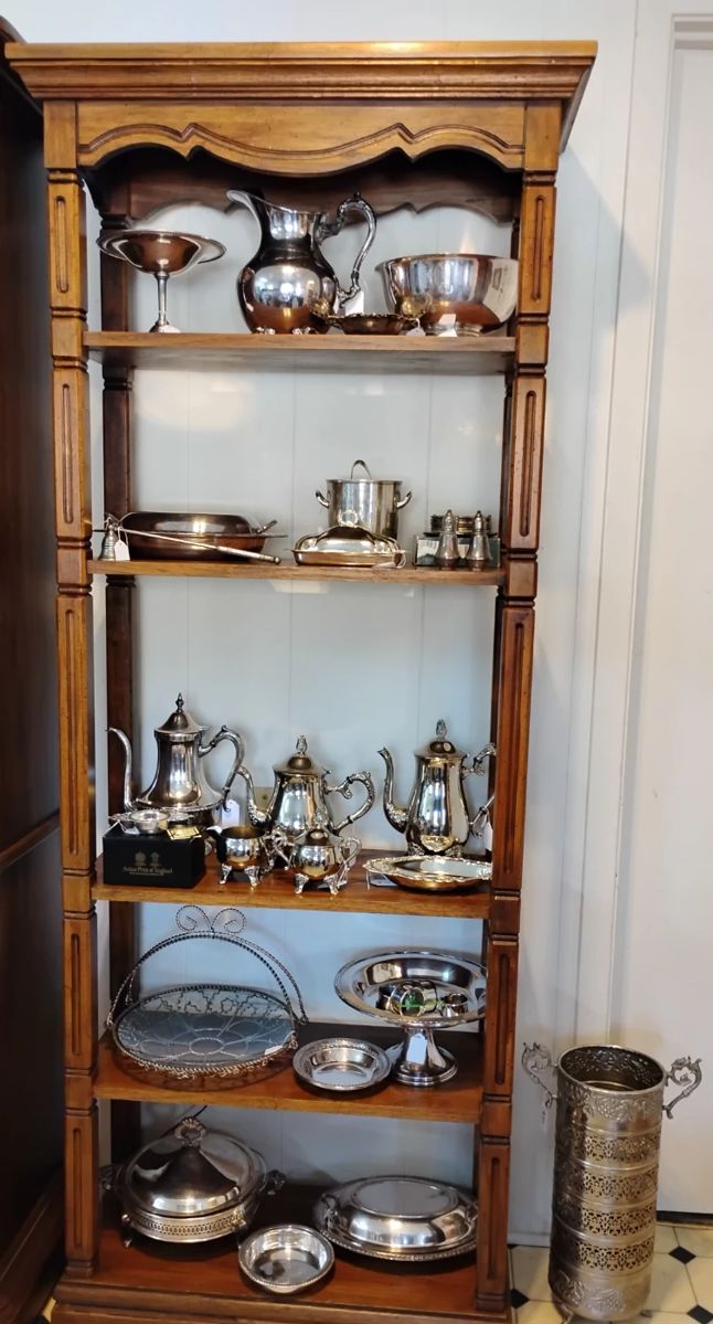 Complete estate liquidation. Most items 75% off. Vintage and mid-century modern, well-kept home. Furniture, full kitchen, linens, collectibles, lady's clothes and purses including new with tags Cole Haan leather jacket and size 12 wedding gown, garden items, books, lamps. China cabinet and matching sideboard, Etagere, Wood Dining table and four chairs, Double dresser with mirror, Jewelry armoire, Antique secretary, Antique small roll top desk with pull out writing surface, Huntley Vanity desk with mirror, Wicker 3 drawer chest, Wicker etagere, Wicker rocker, Broyhill sleeper sofa, Lazy-boy sleeper sofa, Wood 3-piece entertainment center, Mid-century modern recliner with foot stool, Side chairs,...