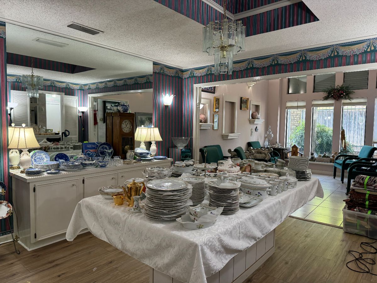 We have a fantastic sale for you this week! Here is a list of items that will be available at this sale... - Loius Vuitton bags - Designer hand bags - Designer clothes - Washer and dryer - Stainless refrigerator - King size Bedframe - Full size Bedframe - Lots of Christmas decor - Men's and women's clothes and shoes - Flow Blue dishes - Crystal - Waterford - lamps - Emerald velvet dining chairs - Pottery - Paintings - Silverplate serving pieces - Leather couch - End tables - Candles - Fabric - Dishes - Corningware - Silverware -...