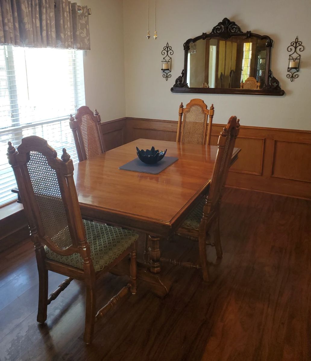 Large Dining table with 3 leaves 8 chair's