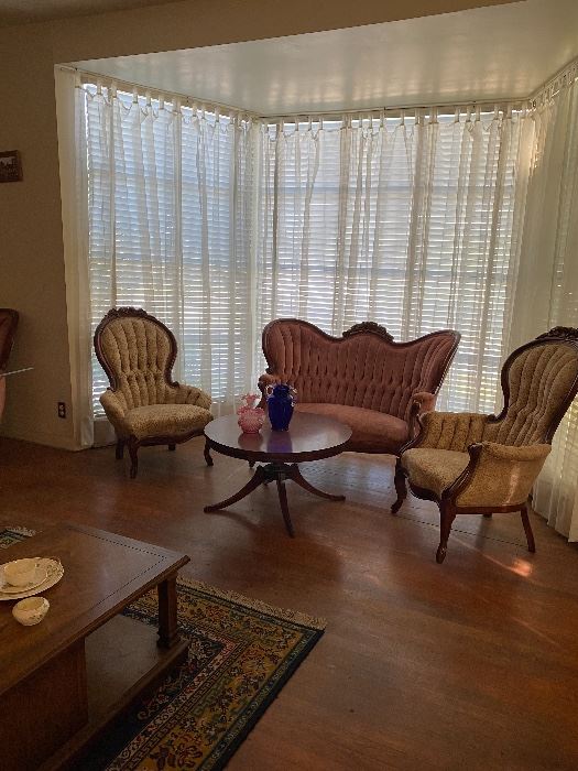 Estate Sale! Vintage Harlingen home, full of fun finds! Everything from tools, vintage bikes, fishing rods, washer and dryer, refrigerator, beautiful antique living room set, dining tables with extensions and chairs, accent chairs and sofas, accent tables, antique oak buffet, antique bed, chest of drawers with mirror, executive desk, solid wood bar stools, vintage paintings, collectible projector, collectible glass decor, kitchenware, and more!