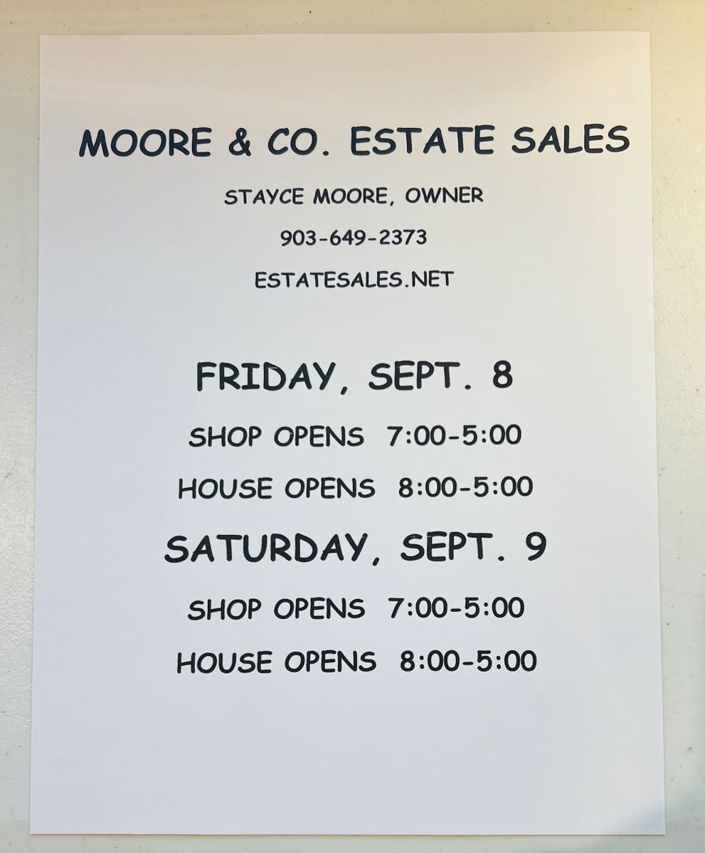 Crawford Estate Sale Henderson, TX Home, Garage and Large Shop are FULL!!!!! SHOP will OPEN at 7am HOME will OPEN at 8am Shop full of tools, electrical supplies & building supplies, Vintage Texaco cans, Coleman lanterns, Hoist & Vermette Machine Co. 520A Lift 500Lb, Woodworking Tools, Large Ladders, Vintage Doors, Yard Tools, Scaffolding, Washer & Dryer, King Size Bed and Dresser, Magnalite Cookware, Vintage Glassware, Sears Featherweight Sewing Machine, So many Vintage Collectables!!, Mens & Womans Clothing, Shoes & Handbags - Coach, Brighton, Dooney & Burke and more, Vintage Toys, Vintage Linens, Vintage 6’ Aluminum Christmas Tree - Color Wheel,...