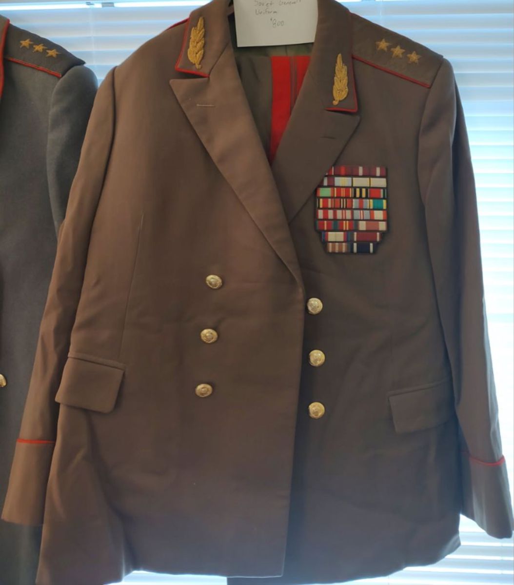 Final Liquidation 75% off or more .. some exceptions no discounts on items 3.00 and under Note: Discount DOES NOT apply to new items brought in such as vintage clothes ie: New Religion items - prices are as marked - there is no presale . antique bottles Excellent vintage goods and extraordinary militaria Fridge and we are selling the stove! Luftwaffe EM/NCO M43 cap…no discount Featuring some very rare and hard to find military items. Complete Soviet General's uniform with paperwork. East German border guard full uniform, German helmets, american and German service revolver holsters. Also featured is original photography...