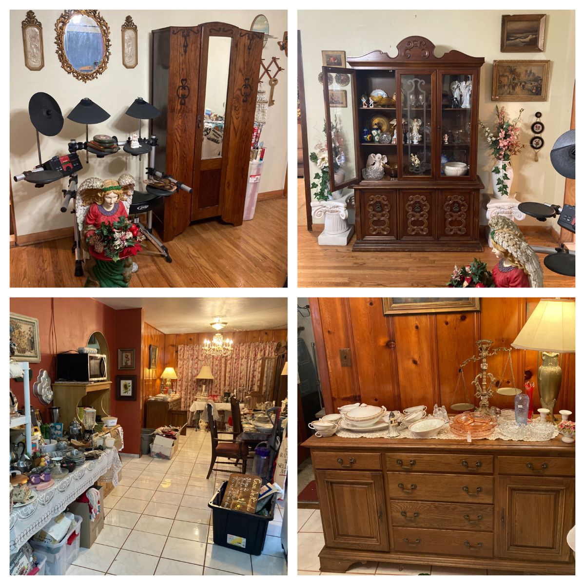 Original owners - FULL HOUSE - something for everyone. PLEASE NOTE - these pics are sneak previews. MORE pics will be added after everything has been unboxed and sorted. KEEP checking back! Living room includes: antique wardrobe, china cabinet, table (w/leaf) plus 2 chairs. Den includes: like new grey upholstered couch, lift chair, entertainment center, book cases, curio cabinet Dining room includes: large dining table in pristine condition (w/2 leaves), vintage china cabinet, Keller sideboard Bedrooms includes: vintage wood desk, 2 wood dressers, Queen Anne cherry high boy, large armoire Tons of collectibles from all decades. Nice China sets including...