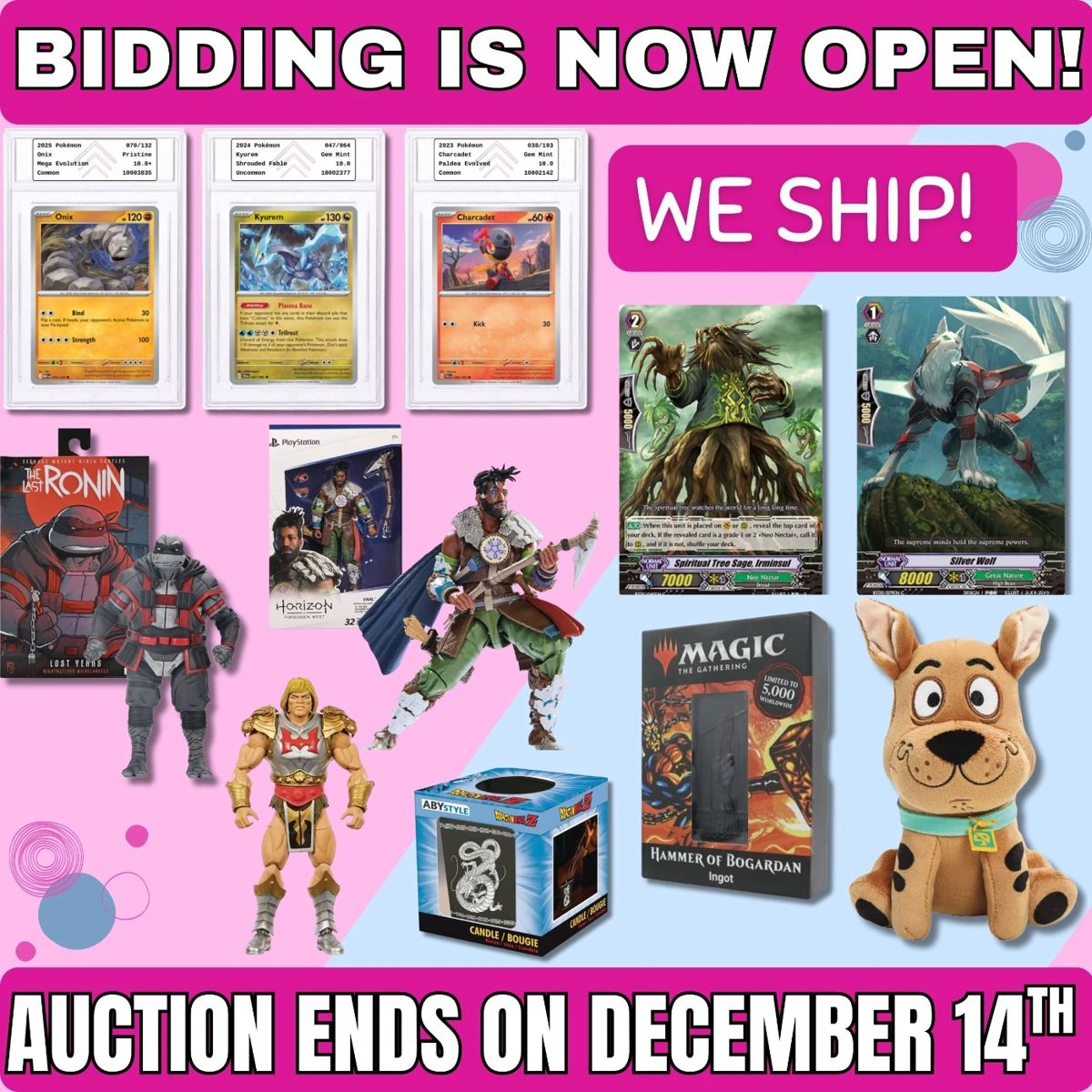 Place your bids at https://garnetgazelle.hibid.com/ bidding is open now, but be quick because the items will start closing at 11 AM Central / 12 PM Eastern on Sunday. Check out our exclusive auction packed with collectible treasures like Sports Cards, Pokémon Cards, Action Figures, Funko Pops, Plushies, Lego Sets, Toys, and more! Each week, we feature a fresh selection of unique and exciting items that are sure to catch your eye. This auction is one you don't want to miss! If you have questions please email us at support@garnetgazelle.com Buy multiple items to maximize savings as we combine items for...