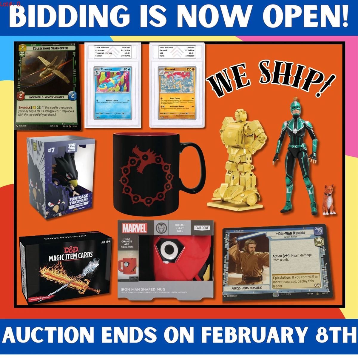Place your bids at https://garnetgazelle.hibid.com/ bidding is open now, but be quick because the items will start closing at 11 AM Central / 12 PM Eastern on Sunday. Check out our exclusive auction packed with collectible treasures like Sports Cards, Pokémon Cards, Action Figures, Funko Pops, Plushies, Lego Sets, Toys, and more! Each week, we feature a fresh selection of unique and exciting items that are sure to catch your eye. This auction is one you don't want to miss! If you have questions please email us at support@garnetgazelle.com Buy multiple items to maximize savings as we combine items for...