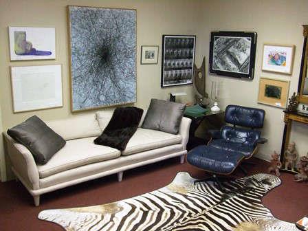 ESTATE SALE HUGE ZEBRA SKIN RUG LEOPARD SKIN RUG PRE-COLUMBIAN POTTERY FIGURES ROSEWOOD EAMES CHAIR W/OTTOMAN CUBE END TABLE 2 FRENCH ARMOIRES BLACK LACQUER DECO-STYLE REFRIGERATED BAR VICTORIAN MARBLE-TOP DRESSER W/MIRROR 19TH CENTURY "CANNONBALL" DOUBLE BED SET OF 6 CHIPPENDALE STYLE DINING CHAIRS LARGE GREY WOOL CUSTOM SCULPTED AREA RUG BLACK LEATHER & STEEL RECAMIER CONTEMPORARY LINEN SOFA FRENCH DESK LARGE STEEL "MEILINK" SAFE WHITE "HOTPOINT" REFRIGERATOR STEREO EQUIPMENT 42" SAMSUNG FLAT SCREEN T.V. LOTS OF SILVER PLATED SERVING PIECES LALIQUE CAVIAR SERVER BEAUTIFUL HAND CARVED AND INLAID ELEPHANT FIGURE CONTEMPORARY ART BY: MIKE SORG, TAD GRIFFIN, FLOYD NEWSUM, WASA...