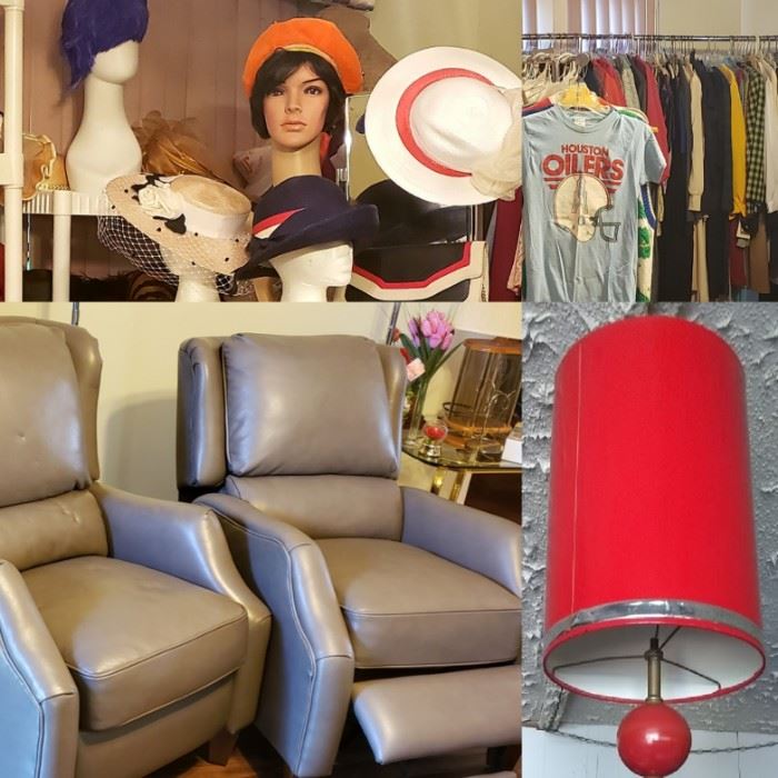 Hats Off To this Hobby Airport area sale of a former Teacher of the Year! It is full of amazing hats--many by Jack McConnell! There are racks and racks of garments! Many items with the tags still on them sizes Medium to X Large. Many modern, recently purchased dressy suits and dresses size 12-16. Great shoes sizes 7 to 8, lots of purses, and a plethora of teaching supplies.