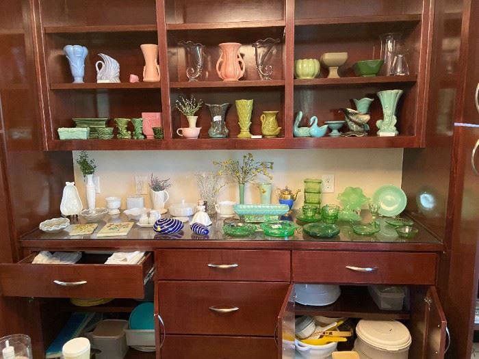 Lots of costume jewelry, chandelier, antique double drop dining table w/3 leaves & 9 chairs, antique buffets, all kinds of linens, artwork, crystal/glassware, Fiesta, china, lamps (1 Waterford), mirrors, collectibles, silver plate, antique secretary, S&P collection, kitchen items, McCoy pottery collection, vaseline glass, jadite, GE microwave, vintage Pyrex & matching Corelle, vintage tins, small kitchen table w/4 chairs, Frigidaire fridge, Whirlpool washer, Frigidaire electric dryer, Aleko portable sauna, sofa, recliner, swivel barrel chairs, coffee table, end tables, antique chests, etageres, decor, knick knacks, TVs & mounts, PEZ dispensers galore!!, Jewish/Hanukkah items, driedels, baker's racks, TV stands, tables & chairs, antique...