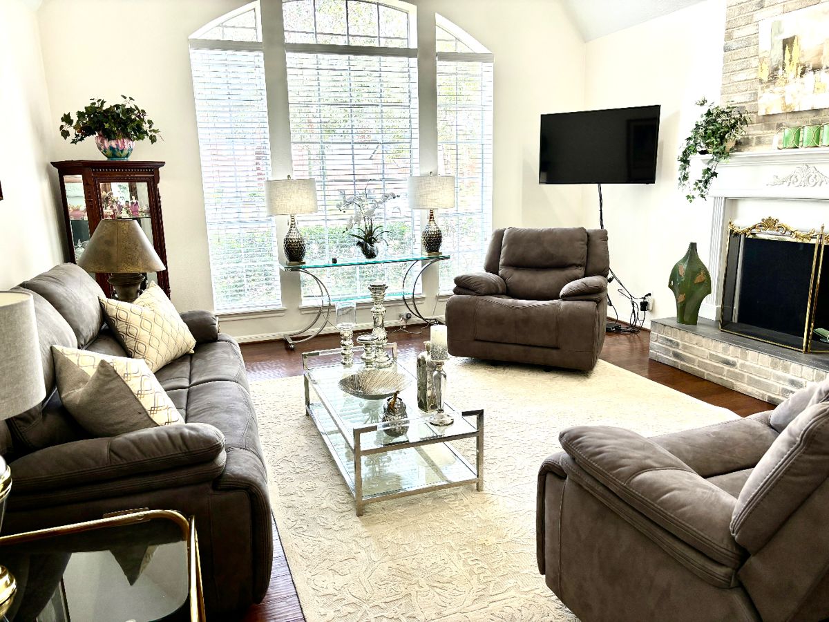 Electric reclining sofa and pair of matching easy chairs * Leather sofa * Several fabulous console/entry tables * Sleek chrome coffee table * Display cabinets * Modern dining set * Metal pub set * King bed/ dresser/night stands Contemporary and other styles of art * Amazing assortment of lamps * Large collection of Portmeirion * Collectibles by Royal Doulton, Kaiser, Capodimonte, Royal Crown Derby and others * Beautiful crystal * Florals Barware * 2 Wine coolers * Small kitchen appliances * Cookware * Electronics * Speakers * Linens * Ladies clothing, shoes, purses and fashion jewelry * Puzzles * Garage...