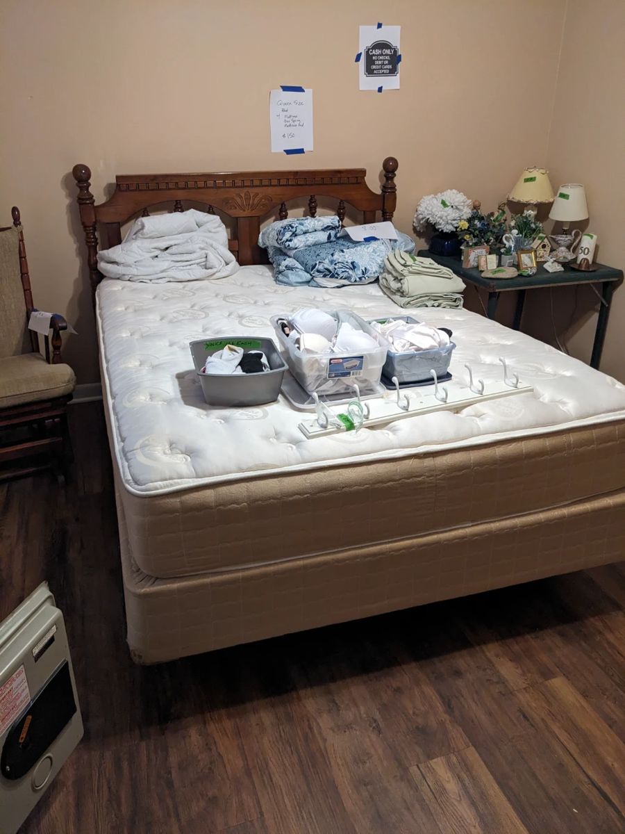 There's something for everyone at this sale. Chest freezer, Refrigerator, Couch, Love seat, 2 La-Z-Boy lift chairs, Full bed, Queen bed, Adjustable queen bed, Bedroom furniture, Craft items, Jigsaw puzzles, Books / Disney vhs / DVD / CD, Dining table & chairs, Air compressor, Wood chipper, Self-propelled lawnmower, Tiller, Fishing poles / tackle boxes, Shark floor cleaners, Cabbage Patch dolls, Microwave, Quilts, Sewing machine, Safe, 2 glider rockers, Baseball / softball equipment, Outside chairs, Bird bath, Planters, Yard tools, Kitchen utensils / pots / pans, Cookbooks, Men's and women's clothes / shoes / accessories, School desk, Dog Bathtub, Dremel, Rechargeable...