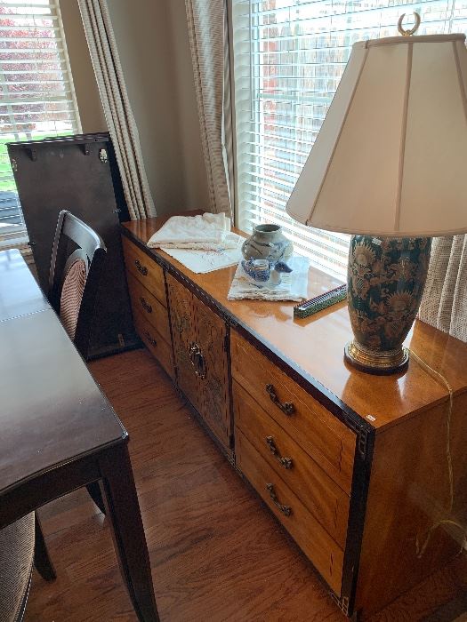 Living Estate Sale. Living and bedroom furniture, beautiful oriental dresser with mirror, cowhide rugs, large collection of current and vintage children's books, vintage record cabinet record player, battery operated lawn mower, kitchenwares, linens and bedding, bunk beds, collectibles, washer/dryer, and fridge, and much more.