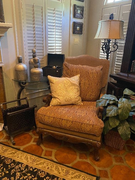 The furniture is STUNNING! Leather sofa, high back Chairs with tall Table with barley legs (leather upholstery) Queen bedroom suite, leather Couch, oversized occasional Chairs, amazing home Decor, Native American Decor, Art prints, great floor Lamps and table Lamps, entertainment pieces, entertaining Dishes and Glassware, Shoes (women's size 7.5 ) & Clothes!