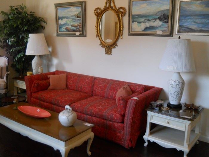 FURNITURE INCLUDES : (2) Queen Bedroom Sets (Bed, Dresser, Night Stands, Desk & Vanity); Newer Posturepedic Mattress; Sofa; Dining Table/6 Chairs; Mid-Century End Tables & Coffee Table; Antique Tilt Table; Antique Parlor Chairs; (2) Mid-Century Brass Tray Tables; Tall Lingerie Chest; Several Occasional Chairs; Leather Top Desk. COLLECTIBLES: 1860 Seth Thomas Wall Clock; Schutz Marine Bell Clock; Elephant Collection; Sterling Silver Flatware (Reed & Barton-Marlborough); 20+ Oil Paintings; Harley Davidson Collectibles; Fenton; Brassware; Mid-Century Accessories; Cast Iron; Western Accessories. OUTSIDE: Wrought Iron Patio Chairs; New Fire Pit; Fishing Poles; Old Large Vise; Craftsman Tool Box; Tents; Tools. NUMBERS GO OUT...