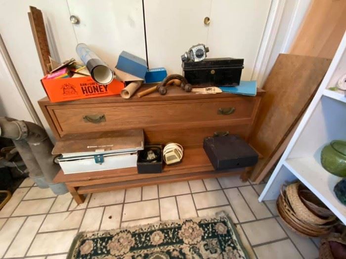 The Estate of Lydia Bryan mother to Dentist Dr. James Bryan of Marlin, Tx. Take a walk back in time to the early 20’s-40’s with this sale: Antique furniture: two twin bed frames (wooden), vanities, armoire, desks, rocking chairs, accent chairs, sewing machine (completely intact), dressers, game board table, two dining room tables w/ chairs (wooden w/ additional sleeves), one collapsible dining room table (no chairs.) Flower pots galore, flower arrangement accessories, vintage books, collectible dish ware, vintage glassware, Tupperware, antique wooden phonograph, Christmas decor and Christmas trees, Marlin mineral water stained jars, crystal and cut glass items, silver plated...