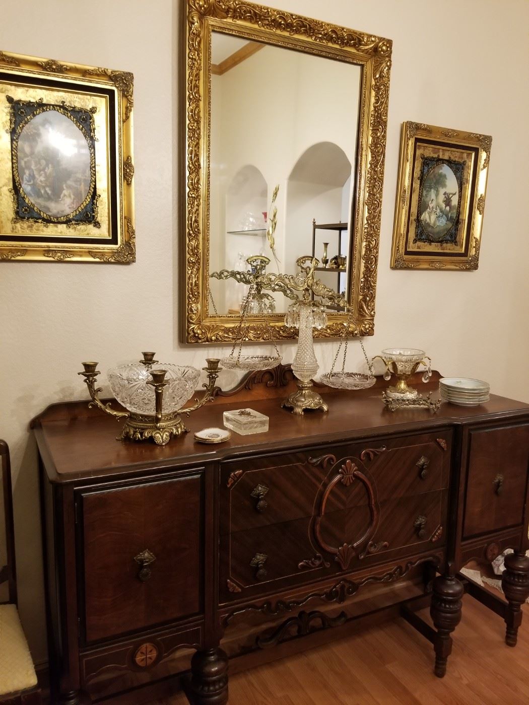 Lots of Furniture Antique Dining Tables, Buffets and Cabinets Entry Table and Mirror Sofas, Sofa Bed, Chairs and Loveseats Coffee Tables Bedroom Set Cedar Chest Bookcases Antique Rugs and Mirrors Antique Oak Desk Kitchen is Packed!!! Pots, Pans, Kitchen Gadgets, and KitchenWare Wine and Bar Accessories Table Linens Lots of Decorative Items.... Figurines, Pictures, Lamps, and Linens Etc! Designer Clothes and Shoes Closets Full of High End Shoes, Clothes and More!! We look forward to seeing you!!! The Boc's
