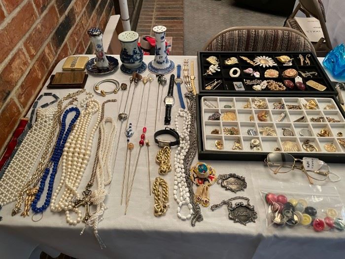 MESQUITE ESTATE SALE THE CLIENT REMOVED THE GI DOLL FROM THE DOLL SALE THAT WAS PICTURED !! 60 YEAR ACCUMULATION OF WONDERFUL ITEMS AND COLLECTIONS IN THIS FULL HOUSE COSTUME JEWELRY, HAT PIN HOLDERS & PINS, COLLECTION OF RIDGEWAY PLATES, LARGE COLLECTION OF TEA POTS, LOADS OF GLASSWAARE, 54 PIECE SET OF CHURCHILL BLUE WILLOW CHINA, COOKIE CUTTER COLLECTION, FRAMED PRINTS, SEWING BOX, BUTTONS, SEWING ITEMS, LAMPS, VINTAGE BLUE WILLOW PLATTERS & BOWLS, FENTON HOBNAIL, GOLD FRAMED MIRROR, 44 PC SET OF MARIA CHINA, MILK GLASS COLLECTION, CORNING WARE, KITCHEN ITEMS, TUREEN'S, 36 PC KAYSONS GOLDEN FANTASY CHINA, DAZEY BUTTER...