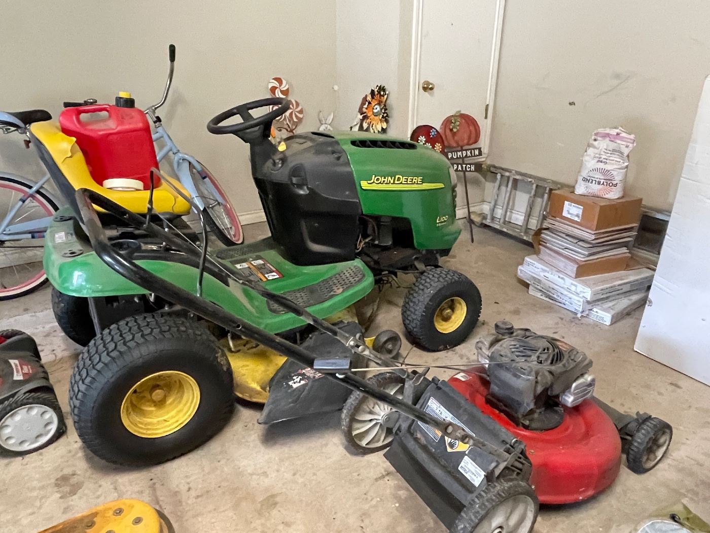 - riding lawn mower and tools