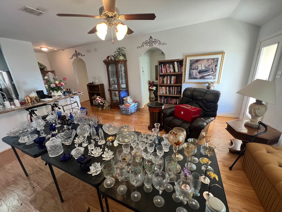 This is a Private estate sale selling all the belongings of a 3 bedroom 2 bath house. Large amounts of books, glass ware, clothes, electronics as well as tools and Jewelry. Everything must go!