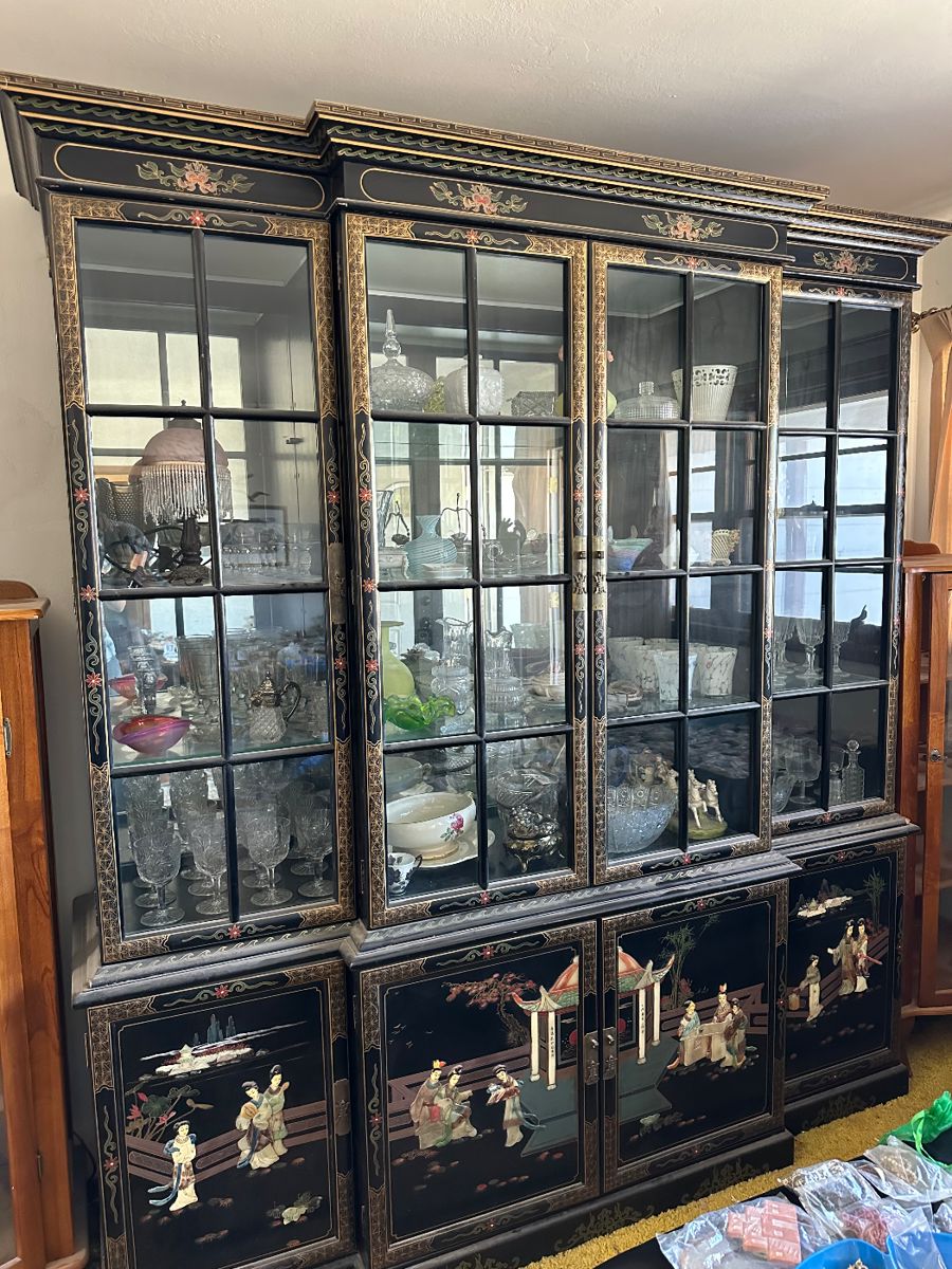 This estate is packed with jewelry and antiques but also has plenty of other items such as tools, decor, appliances & collectibles! Some of what we have includes: A beautiful union National black lacquered w/pearl inlay chinoiserie Chinese display cabinet, Upright piano, multiple antique bow glass front oak curio cabinets & a unique coffee table curio cabinet, Tons of designer jewlery, Lots of crystal & designer glass pieces (mostly Murano), Ceramic collectibles & figurines, Cow related collectibles, Marble top harp stand side table, Multiple jewlery cabinets, Unique antique dressers & vanity’s, Bedroom furniture & newer queen sized mattresses, antique headboards,...