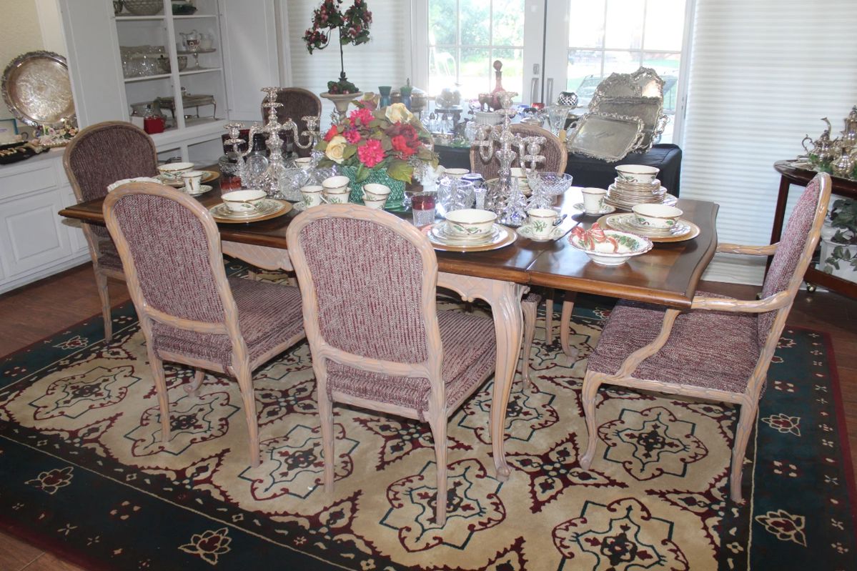 This wonderful home is packed full of great antiques and collectibles, including... large set of Reed & Barton Florentine Sterling Silver flatware, set of Michaelangelo stainless flatware, proof set coins, mounts including: Leopard, Kudu, Elk, Common Elan, Waterbuck, Wildebeest, Dik Dik, Impala, Antelope, Zebra skin, Warthog,, gold jewelry, sterling silver jewelry, costume jewelry, Lalique, Waterford, Lennox "Holiday" china, Lennox "Holiday Nouveau" china, silverplate punch bowl, ladle, silverplate serving pieces, Reed and Barton silverplate tea service, sterling silver serving pieces, vintage Hoffritz antler serving flatware, Adams china, Blue Danube dishes, Noritake "Simplicity in Blue" china, Noritake "Richmond", Spode "Blue Tower" china,...