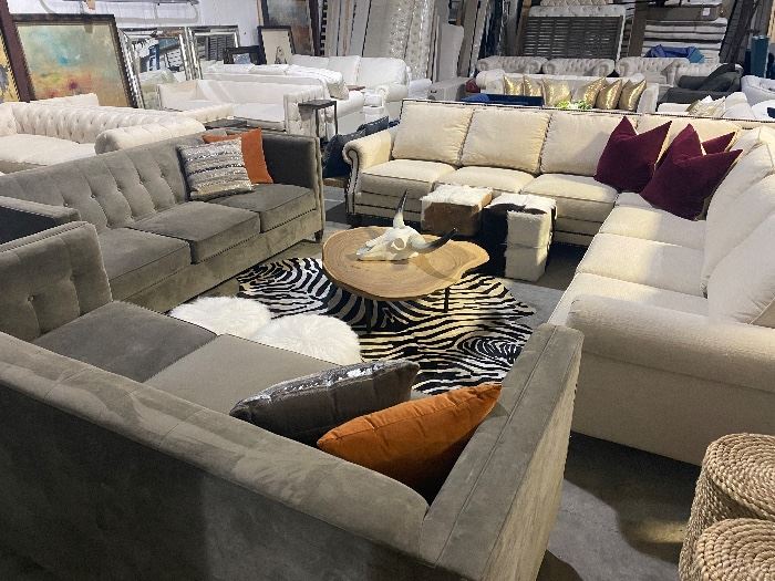Huge modern furniture sale that was used for staging luxury end homes. Also contains appliances, gym equipment, decor, rugs and patio furniture.