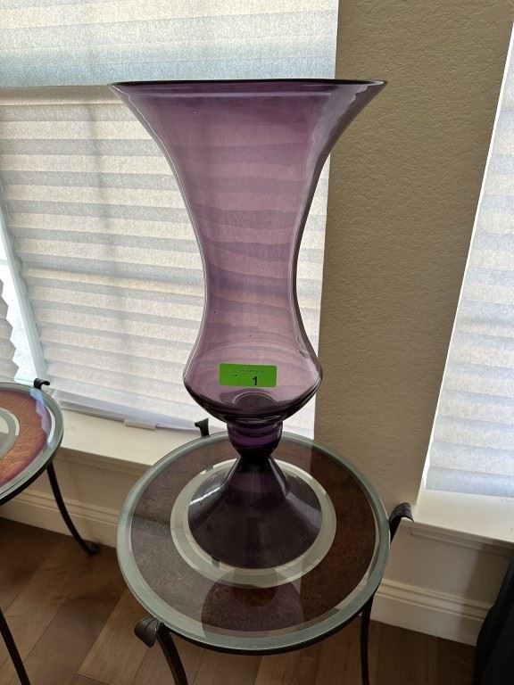 Lot Number Lead 1 LARGE AMETHYST GLASS VASE 2 POTTERY BARN VASE 3 2PC ROUND SIDE X SIDE GLASS TOP END TABLES 4 SIGNED PRINT BY HILARY MORRIS & OTHER 5 DIGITAL ART PRINT SIGNED 6 DIGITAL ART PRINT SIGNED 7 YAMAHA FLUTE W CASE 8 2PC SIGNED PRINTS BY DONNA SHUFORD 9 LARGE RED TABLE LAMP 10 NIKON D70 CAMERA W PELICAN CASE & LENSES NOTE 11 NICE ROBB & STUCKY UPHOLSTERED DESINGER SOFA 12 LARGE FRAMED PRINT LORNA PATRICK GRAY GATE NOTE 13 2PC MATCHED UPHOLSTERED ARM CHAIRS 14 NICE ROLLING CARRY ON SUITCASE 15 LARGE FLOOR LAMP...