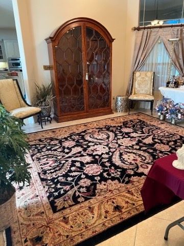 EXTREMELY LARGE, HIGH END SALE! Please view all 200 photos! ITEMS INCLUDE: Francesco Molon burl walnut display cabinet, Sarreid brass chest, large amount of collectibles, porcelain figurines, Bernhardt formal dining table with 6 chairs with companion china cabinet and buffet, floral decor, original framed artwork, large amount of oriental decor, brass torchieres, Henredon upholstered side chairs, very large rugs, queen beds, gentleman's chest & dresser with mirrors by Century, Oriental carved table, wicker shelving, day bed, custom made bedding, Mid-Century dresser with mirror with companion chest of drawers & night stand, clothing armoires, Gem Stone standing globe, marble top tables,...
