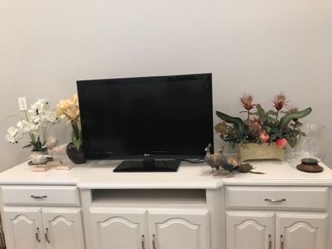 RANCHO VIEJO ITEMS INCLUDE: Flat screen TV's, modern sofa with companion chairs, large coffee table, lamps, upholstered side chairs, occasional tables, wood file cabinet, home decor, large rugs, artwork, books, office supplies, collectibles, crystal, floral decor, designer handbags including Fendi, Burberry, Tory Burch, lots of women's clothing, shoes, men's clothing, mirrors, pillows, bedding, linens, queen, full & twin beds, dresser with mirror, night stands, bar stools, vintage kitchenware, pots & pans, small appliances, glassware, entry table, display cabinet, marble top table, costume jewelry, bathroom items, Sentry safe, hanging jewelry storage, leather chair with ottoman, patio/sunroom furniture, round kitchen table, plants,...