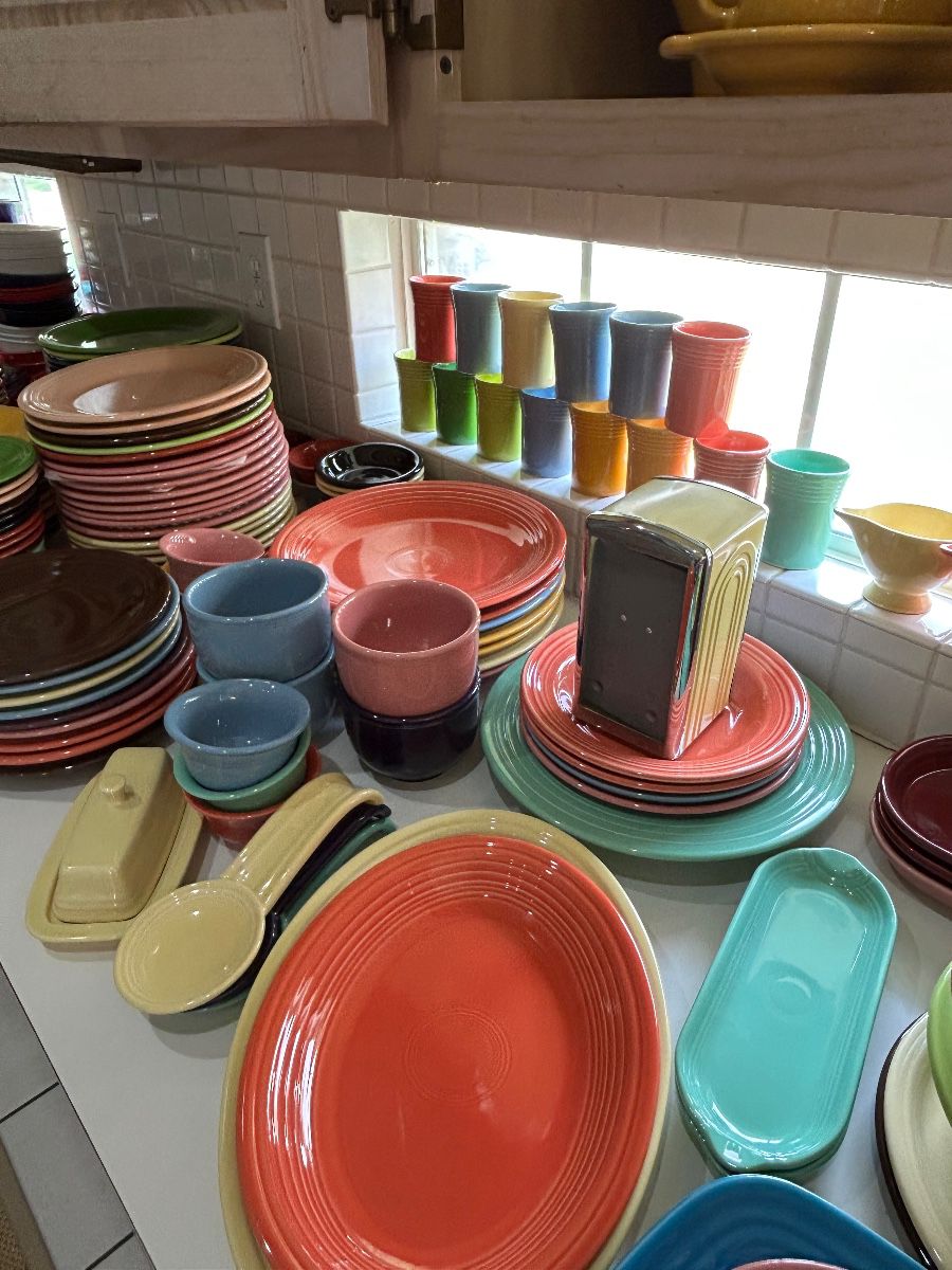 This estate offers a selection of vintage housewares, fine china and collectible home accents. The shining star is a vast Fiestaware collection with nearly 500 pieces. Herend animal porcelain figurines - highly collectible with rare colors. Lenox holiday china, silver serve ware, Tiffany and Waterford crystal, vintage glass and pottery, Pyrex, Calphalon Collectible vintage magazines, sports programs, newspapers from 1960s+ Jewelry, record albums, cigar boxes, Barbies, new and vintage toys and other popular collectibles Crafter’s heaven! Fabric, sewing, scrapbooking, paper, florals, holiday, baskets, and frames. Tools, coolers, vacuums, home organizing, patio furniture, sofas, armchairs, MCM furniture, rugs, framed art.