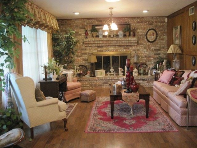 Large estate sale full of quality furniture and décor. Sofa, wing back chair, arm swivel chair, antique wardrobe and organ, 3 sewing machines with accessories, large wood coffee table with matching end table, Duncan Fife dining table with six chairs, china hutch, antique vanity with 3 mirrors, overstuffed upholstered wingback chair, baby cradle, 2 high chairs, sofa table, stereo console with 8 track player, vintage Zenith TV (works), small barley twist drop leaf table, washer, dryer, refrigerator/freezer, wine frig. Large collection of Bradford Exchange Christmas Village houses and figurines, Dale Earnhardt collectibles, Blue Willow china, Crystal, chef and rooster collectibles,...