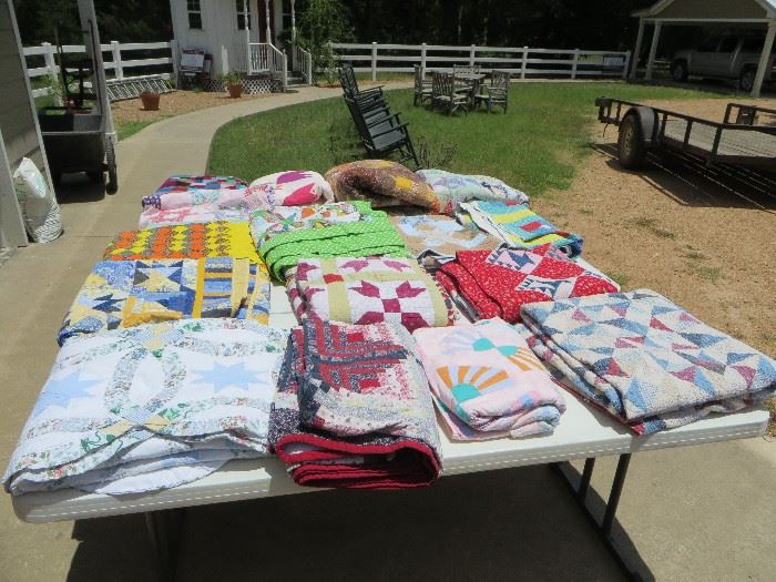 LONGTIME COUNTRY FAMILY MOVING TO BIG CITY. 50 YEAR COLLECTION. LARGE COLLECTION AMERICANA/TEXANA FOLK WOOD CARVINGS (PJ. HORNBERGER, WAYNE AYERS ETC., A DOZEN NICE QUILTS, VERY LARGE COLLECTION OF DESERT ROSE FRANCISCAN WARE DISHES,COLLECTION OF ANTIQUE WOOD WORKING TOOLS, 5 NICE ANTIQUE CHILDREN'S ROCKERS, ANTIQUE WINDOWS, 3 LG. MAHOGANY ANTIQUE FRAMED WINDOWS, PAINTINGS, WATERCOLORS, LARGE STEPBACK CUPBOARD, LARGE JELLY CUPBOARD, ANTIQUE ROCKING HORSE, LG ANTIQUE WALNUT TWO DOOR WALL CUPBOARD, RARE ORIGINAL ANTIQUE ROUND CLAWFOOT OAK TABLE C.1900 WITH CASE OF LEAVES, 4 FRENCH COUNTRY SIDE CHAIRS, 6 EXCEPTIONAL STENCILED C.1935 FOLDING GAME TABLE CHAIRS, 6 WOODEN PORCH ROCKERS, EXPANDED...