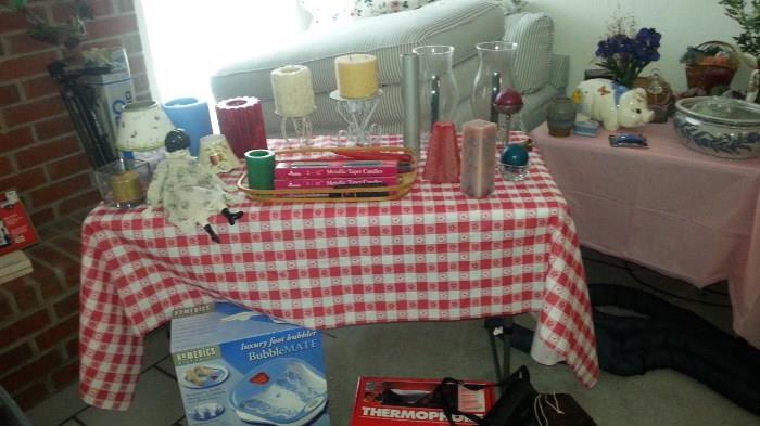 Beautiful artificial Ficus trees @ a bargain 4 & 5 foot; large Ivy baskets; Crafts to make your own at great prices. 2 door refrigerator, Microwaves, Small electric kitchen appliances, Standup Freezer, side tables, plant tables, bar stools, Sony stereo, Sony Walkman's, Headsets, Golf clubs, Candle décor, Computer desk, crystal and glassware. Tall TV entertainment center with storage, Vintage Dresser with oval mirror and stool. Lots more, come see us!