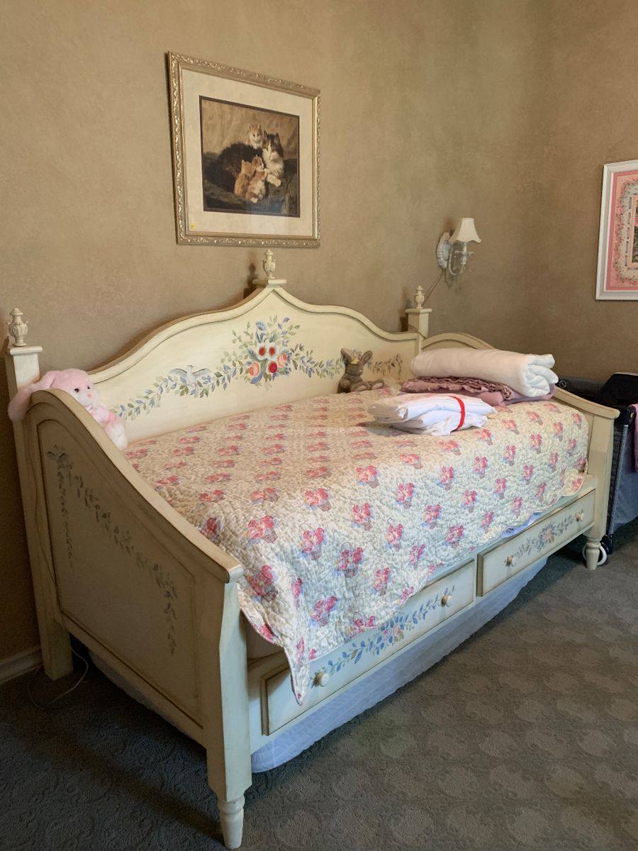 50% off come let us make you a deal today!Beautiful family vacation home, artfully decorated for an exquisite “home away from home”. Little wear & tear on items in this sale. Artwork in every room, chicken/rooster items, Texas, wood, tin, beautiful Christmas decor, wood folk art, teak patio furniture, painted Pulaski, Kaiyo. Model stagecoach, drivers, horses, handmade by W.R. Foster in 2002. metal/wood baker’s rack, Torchiere lamp, Gesso plaques, painted secretary, iron headboard, queen size bed, armoires/TV units(multi-purpose), girl’s floral painted daybed, KidsCraft table & chairs, floral toy box/trunk, wood setees, overstuffed comfy chair, washer & dryer, refrigerator, secretary, small...