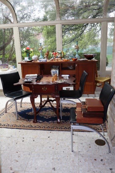Online Sign Up: https://www.signupgenius.com/go/10C0C4DA4A72EA1FAC34-professional40 This home was designed by the architectural firm of Ford, Powell and Carson. The home is done to perfection with details of all sorts of wood, glass, brick and tiles. You will love this sale and will enjoy seeing all the treasures. FURNITURE: Pair of long rectangular glass and wood coffee tables with metal legs, Italian inspired dark blue leather sofas…not a pair but coordinating, pair of off white leather side chairs, very extra long wooden church pew, unique leather and glass large coffee table with the leather inserts, Mexican onyx top and wrought iron oval...