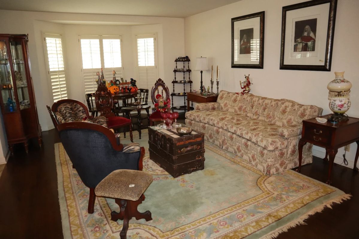 Online Sign up: https://www.signupgenius.com/go/10C0C4DA4A72EA1FAC34-professional96 View photos at www.professionalestatesales.com What a lovely home of a very prominent attorney in San Antonio. You will love all the décor and the collectibles with the cutest Christmas you have ever seen! LIVING ROOM AND DINING ROOM: Animal print Victorian sofa, antique trunk, side table, animal print stool, two red velvet Victorian chairs, antique corner whatnot shelf, round wood table, and chairs, pine pew bench with shelf top, chocolate wood cabinet, four red leather tufted cane back chairs, tall side display cabinet, pink velvet side chair, desk, China cabinet in a Duncan Phyfe style, China...