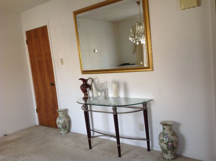 Glassware, living room and bedroom furniture, paintings etc