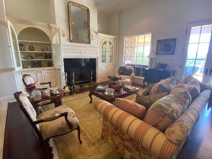 Enter the subdivision on Hardy Oaks and stop at the guard gate. Go straight to Waterford Heights. Gate code is # 2219 Online Sign Up: https://www.signupgenius.com/go/10C0C4DA4A72EA1FAC34-professional47 This 6,500 square foot home has such an assortment of fine furniture, antiques, and many decorative accessories. You will want everything to add to your treasures! FURNITURE: Mirrored front French armoire, striped club chair and ottoman, oversized yellow floral sofa with 3 coordinating fabrics, Henredon chest with Queen Ann legs, pair of French side upholstered chairs, Hekman tables, marble top console table with ormalu, Duncan Phyfe style cabinet/desk, Parson style dining table with glass...