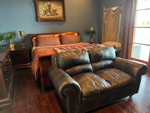 VERY LARGE HOME & BARN! Please view all 178 photos! ITEMS INCLUDE: King bed, dresser, night stands, lamps, dining tables with chairs, chest of drawers, white leather chair, large reclining chairs, queen bed, side tables, home decor, large amount of kitchenware, bar stools, small appliances, pots & pans, small refrigerator, upright freezer, artwork, glass top coffee table, bar-ware & accessories, crystal, Cable-Nelson upright piano, books, grandfather clock, Winchester gun safe, sets of luggage, vacuum cleaners, floral decor, leather chair with ottoman, armoire, flatscreen TV's, men's & women"s clothing, shoes, camouflage clothing, bedding, linens, heavy wood coffee table, cleaning supplies, large...