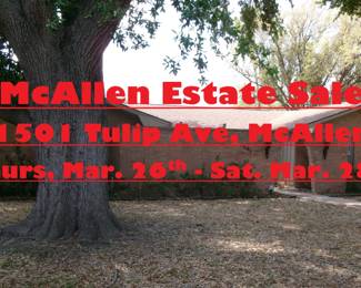 (4 Results)Listed below are all the estate sales that are currently scheduled for the McAllen / Edinburg / Mission area. You may also be interested in estate sale companies in McAllen / Edinburg / Mission.